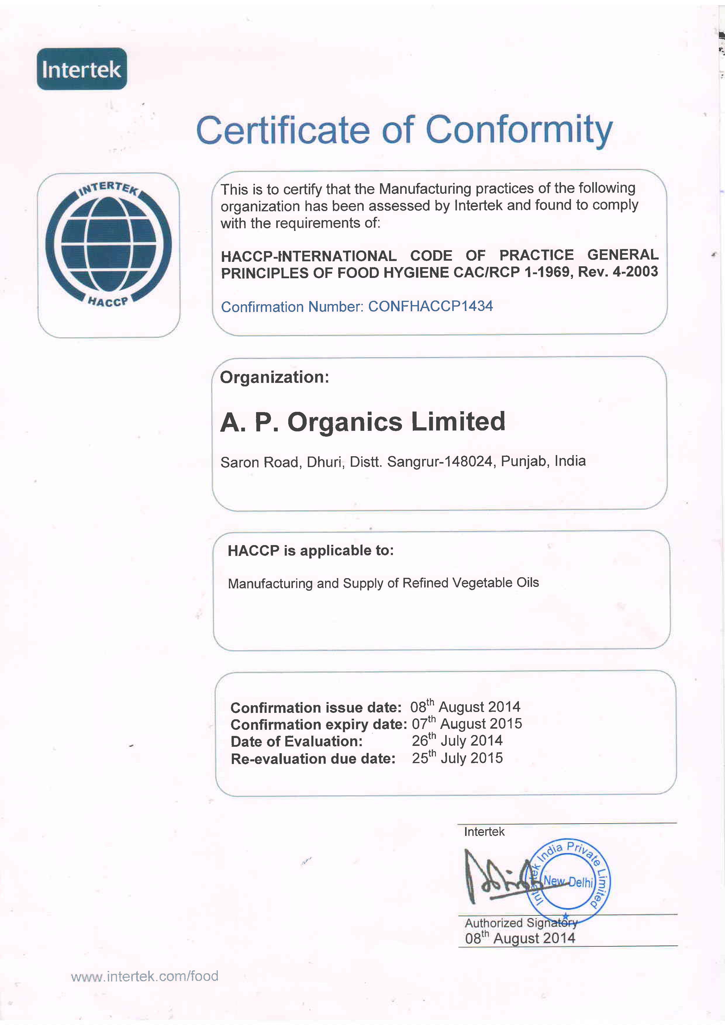 We at Ricela Group of Companies are a step ahead than others when it comes to the quality of our edible oil. We assure food safety and food nutrition through our physical Refining process and the GMP's (good manufacturing practices). We follow international standards of food safety and are certified as ISO-9001-2008 and HACCP (Hazardous Analysis and Critical Control Point), BRC and HALAL