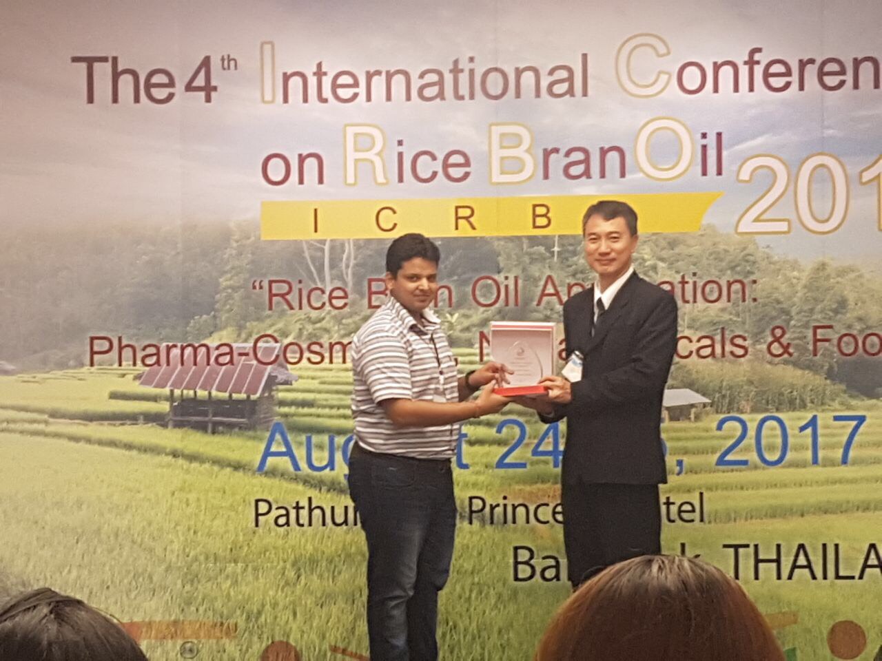 Mr. Puneet Goyal, CEO of the group receiving "Global Industrial Award" at 4th International Conference on Rice Bran Oil 2017 held at Bangkok, Thailand in August,2017